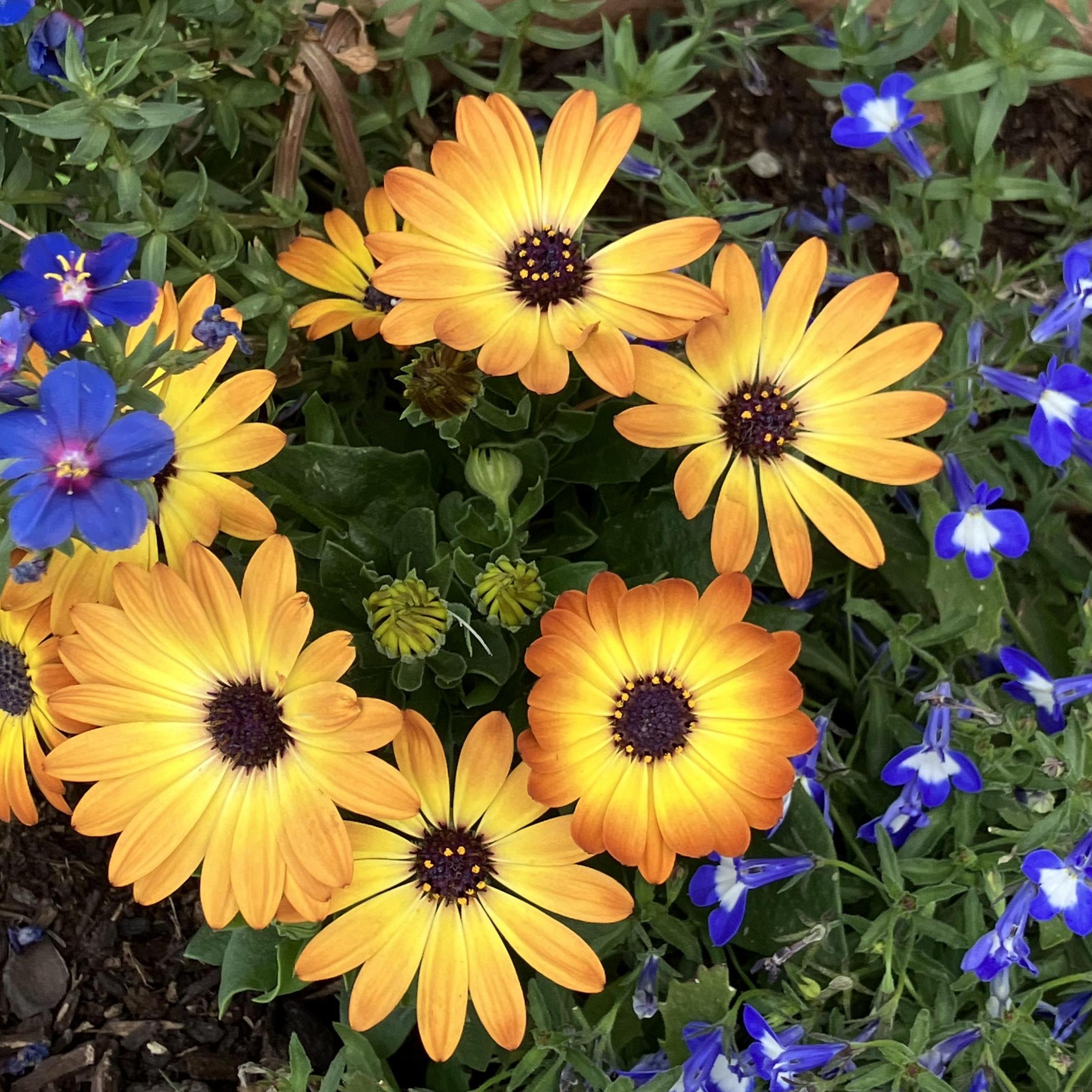 Les osteospermums sont devenus indispensables, tant est grande leur bonne volonté à fleurir les talus secs en pleine terre ou les terrasses et les balcons écrasés de chaleur. On peut les associer dans un jardin sec aux népétas, sauges arbustives, verveines, lantanas ou aux immortelles. Ils souligneront les bordures et fleuriront les rocailles. En mélange de couleurs, ils forment de remarquables couvre-sol. Dans les potées fleuries, on pourra les marier aux bidens ou à l'Erigeron karvinskianus par exemple.