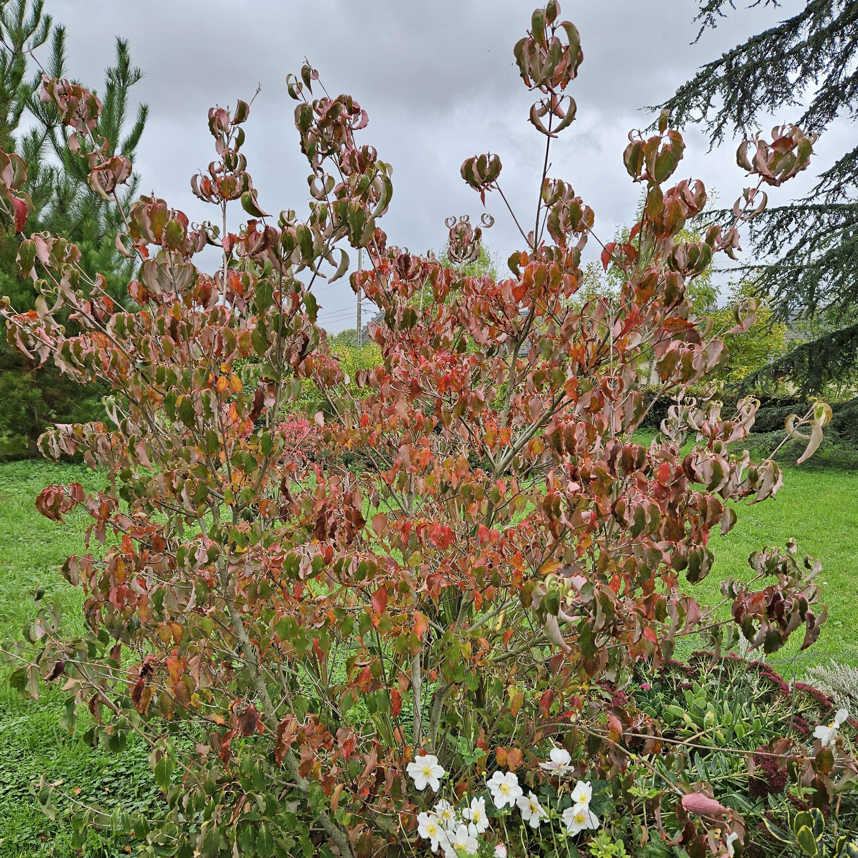 Le Cornus Kousa 'Milky Way' est une espèce intéressante pour son feuillage rouge écarlate en automne, ainsi que pour sa floraison impressionnante avec des fleurs de 5cm de diamètre.