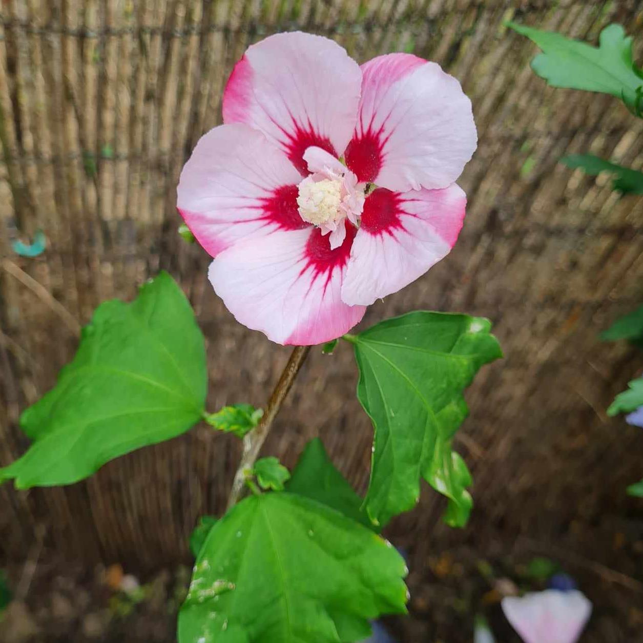 L’Hibiscus syriacus 'Hamabo', aussi appelé althéa ou mauve en arbre, est un arbuste d'ornement recherché pour ses grandes fleurs au coloris charmant, peu ordinaire. Ses pétales délicats d’un rose très pâle, marbrés de rose un peu plus net et rehaussés d’un cœur rouge vif, font de cet arbuste un joyau pour le jardin. Ce cultivar a reçu l’Award of Garden Merit (AGM) de la Royal Horticultural Society, un gage de qualité qui souligne sa robustesse et ses excellentes performances au jardin. Idéal pour créer des haies ou de grands massifs fleuris, il se prête aussi à la culture en grands pots sur une terrasse ensoleillée.