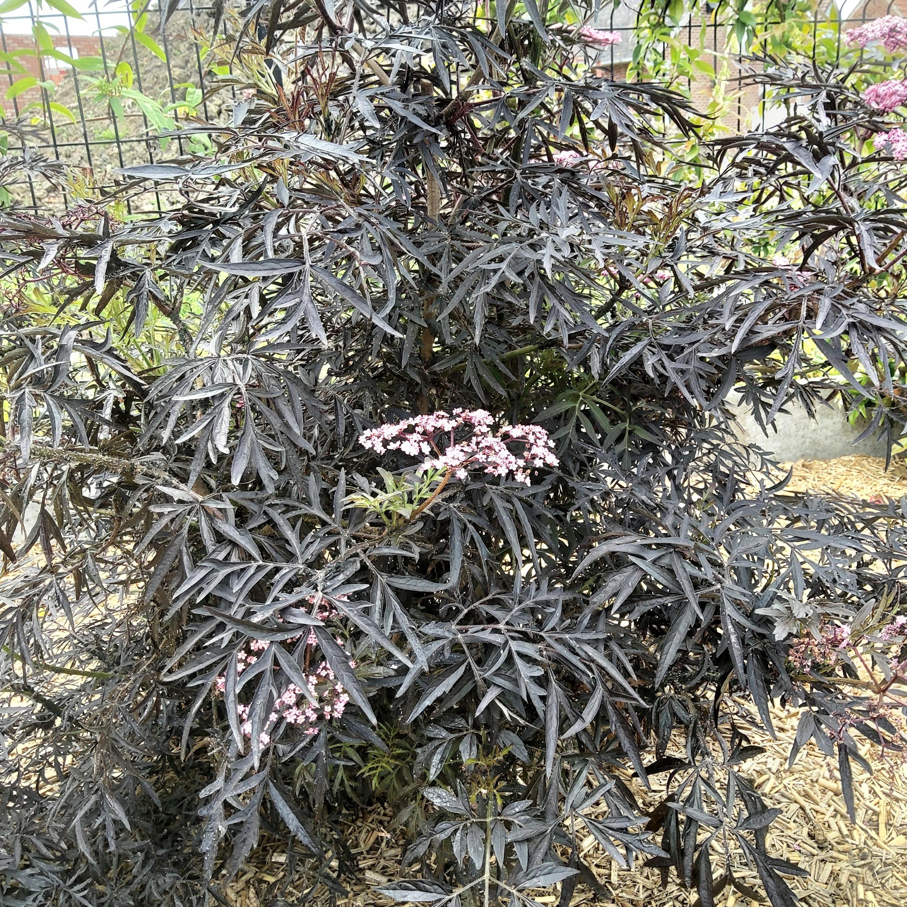 Son feuillage très découpé est particulièrement attrayant, d'autant que sa couleur pourpre très foncé, presque noire, est vraiment originale. Avec son port érigé très graphique, ce petit Sureau sera parfait dans un environnement contemporain, s'associant parfaitement à des murs blancs et des toits en ardoise, ou des paillages minéraux de même nature. De plus, il a le bon goût de produire une floraison tout à fait délicieuse, constituée de grands corymbes de fleurs rosées, qui contrastent bien sur le feuillage sombre en mai-juin.