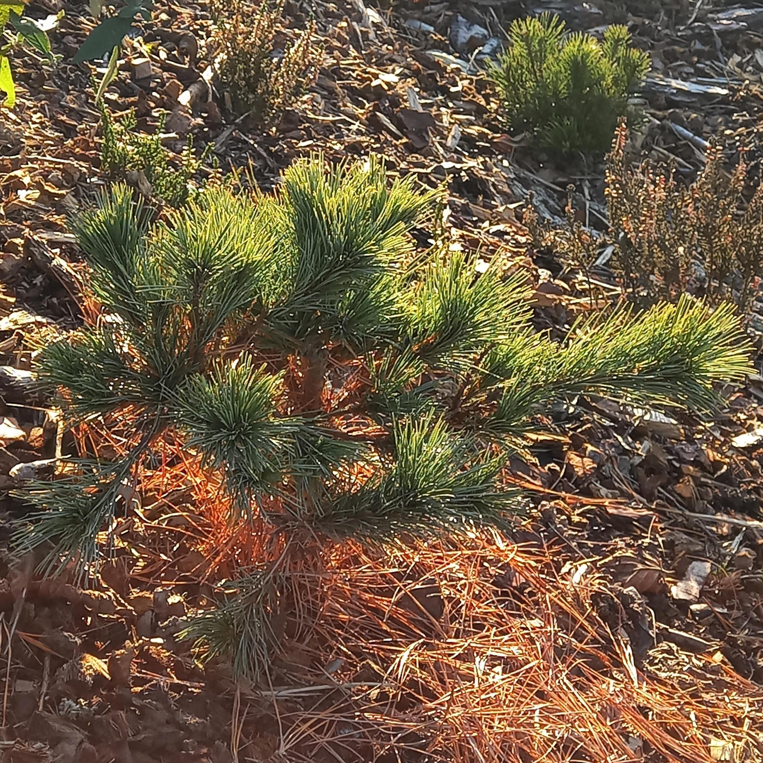 Joli pin miniature, au port arrondi. Aiguilles fines, longues et souples, vert bleuté. A subit un coup de chaud au moment de la plantation en juin, mais est très bien reparti en septembre, avec des soins réguliers. J'espère qu'il grandira vite