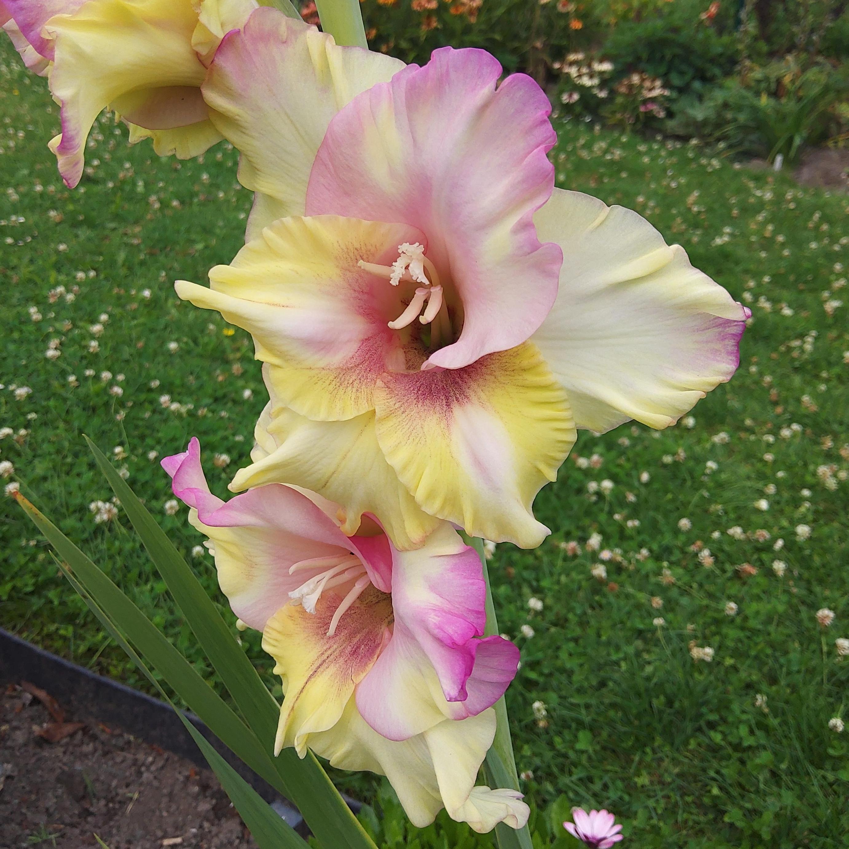 Le Gladiolus 'Mon Amour' est une nouvelle variété à grandes fleurs superbes et délicates. Les tiges très hautes et solide portent à leur sommet des épis bien serrés et dense. Chaque fleur est un mélange subtil de trois couleurs douces, rose barbe à papa, jaune et ivoire. La floraison a lieu pendant de nombreuses semaines. Cette variété spectaculaire sera magnifique dans les massifs de grandes vivaces ou avec les rosiers anciens pour une ambiance romantique garantie.