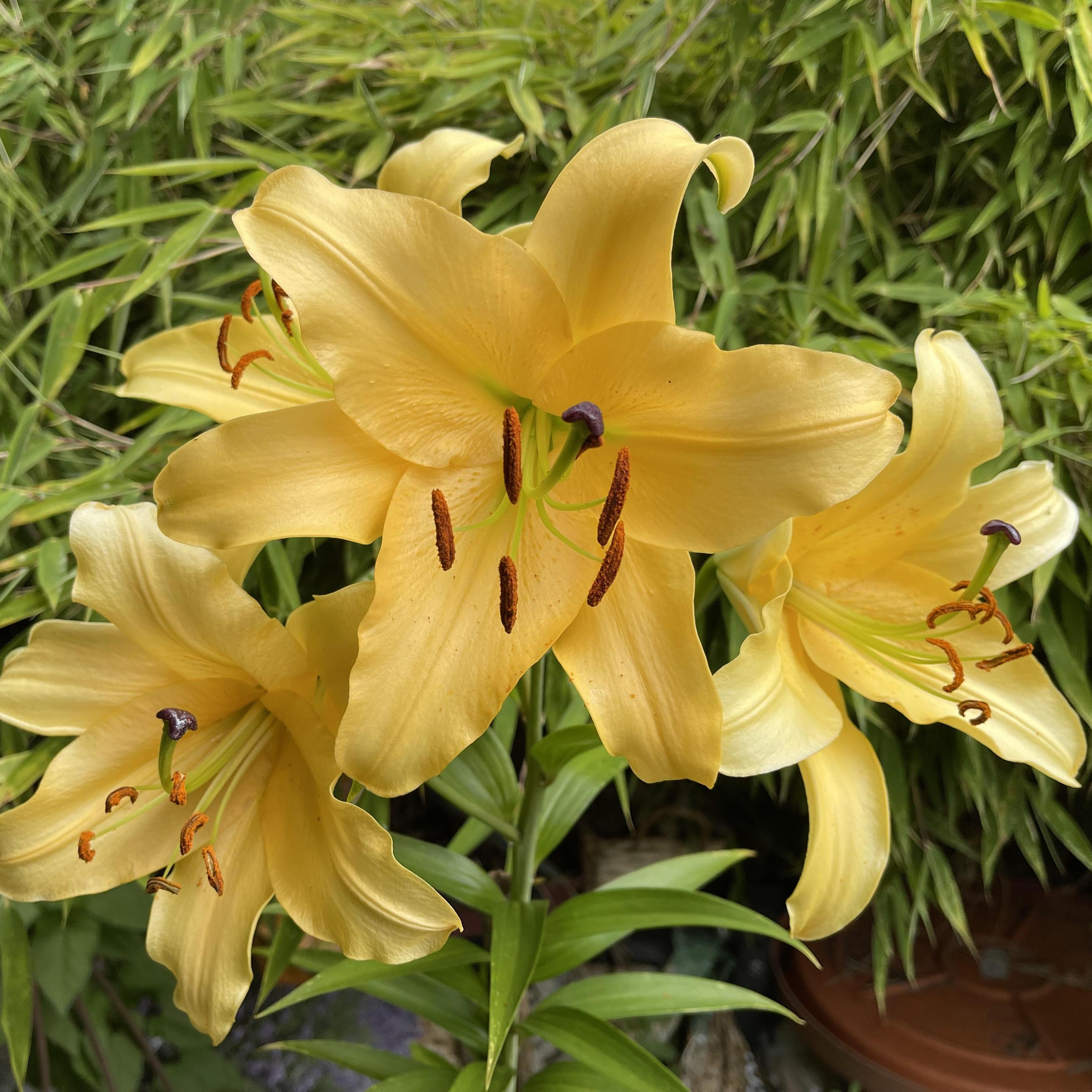 Sur la terrasse, vous pouvez créer des potées somptueuses avec les lis. Choisissez un contenant assez large et profond (au moins 16 cm de diamètre pour 1 bulbe). Remplissez-le avec un mélange de terreau de feuilles et de sable. Plantez les lis par groupe de 3 à 5 bulbes, à 10-15 cm de distance, puis arrosez abondamment. Installez les pots dans une pièce fraîche, ou à l'extérieur dès que les gelées sont passées. La température ambiante devra avoisiner les 12°C. Lorsque les pousses apparaissent, placez le pot dans une véranda ou une pièce très claire, à une température de 18°C environ. Faites des apports d'engrais liquide deux fois par mois jusqu'à l'apparition des bourgeons floraux.