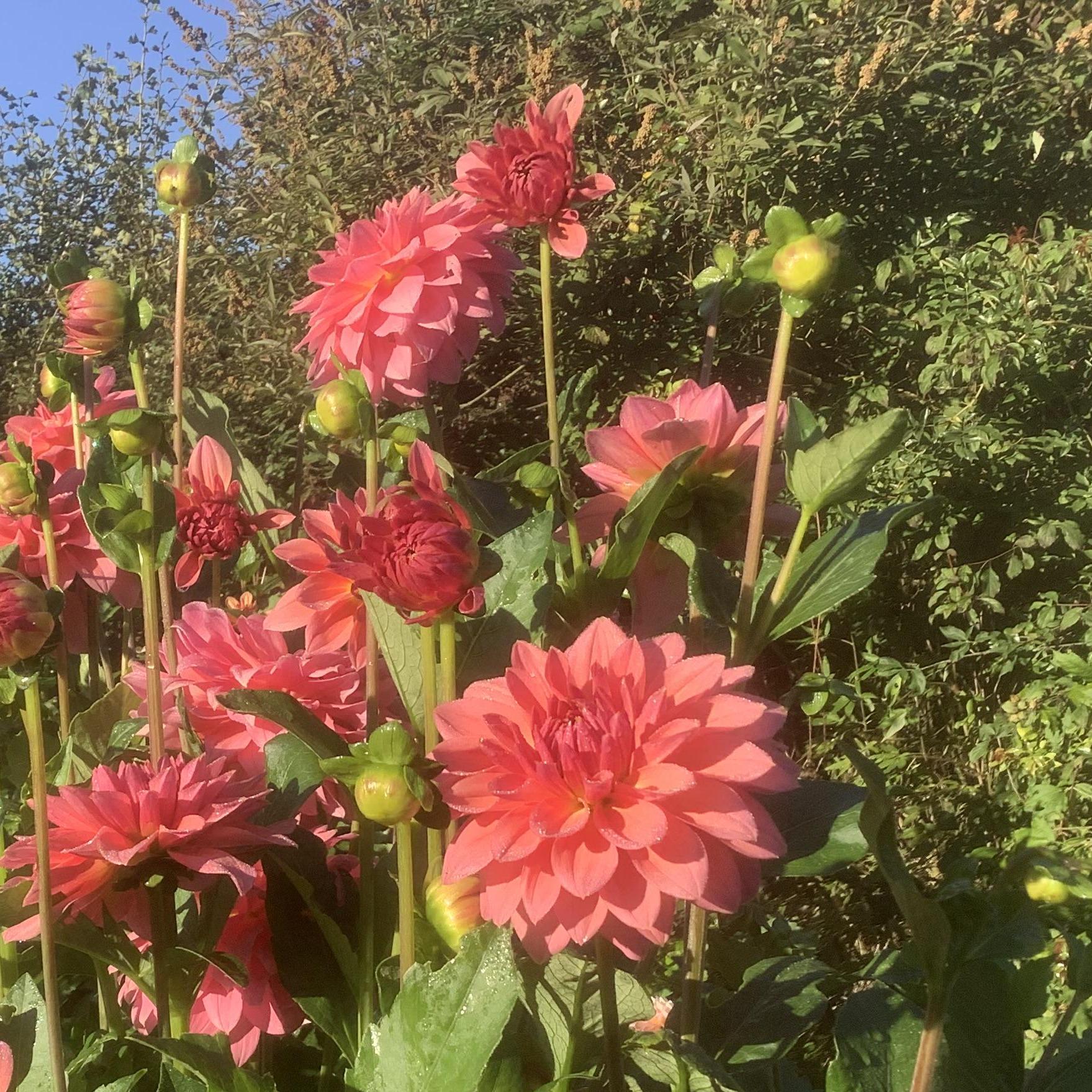 Pour favoriser la floraison et la prolonger par la même occasion, prenez soin de couper les fleurs fanées au fur et à mesure. N’hésitez pas à confectionner de jolis bouquets champêtres en mixant les couleurs et formes de fleurs de dahlias. Plantez plusieurs variétés au potager ou composez des massifs de dahlias. Mariez le dahlia 'Anne Claire' au dahlia décoratif Arabian Night aux fleurs pourpres ou au dahlia balle Burlesca aux fleurs en pompons roses.