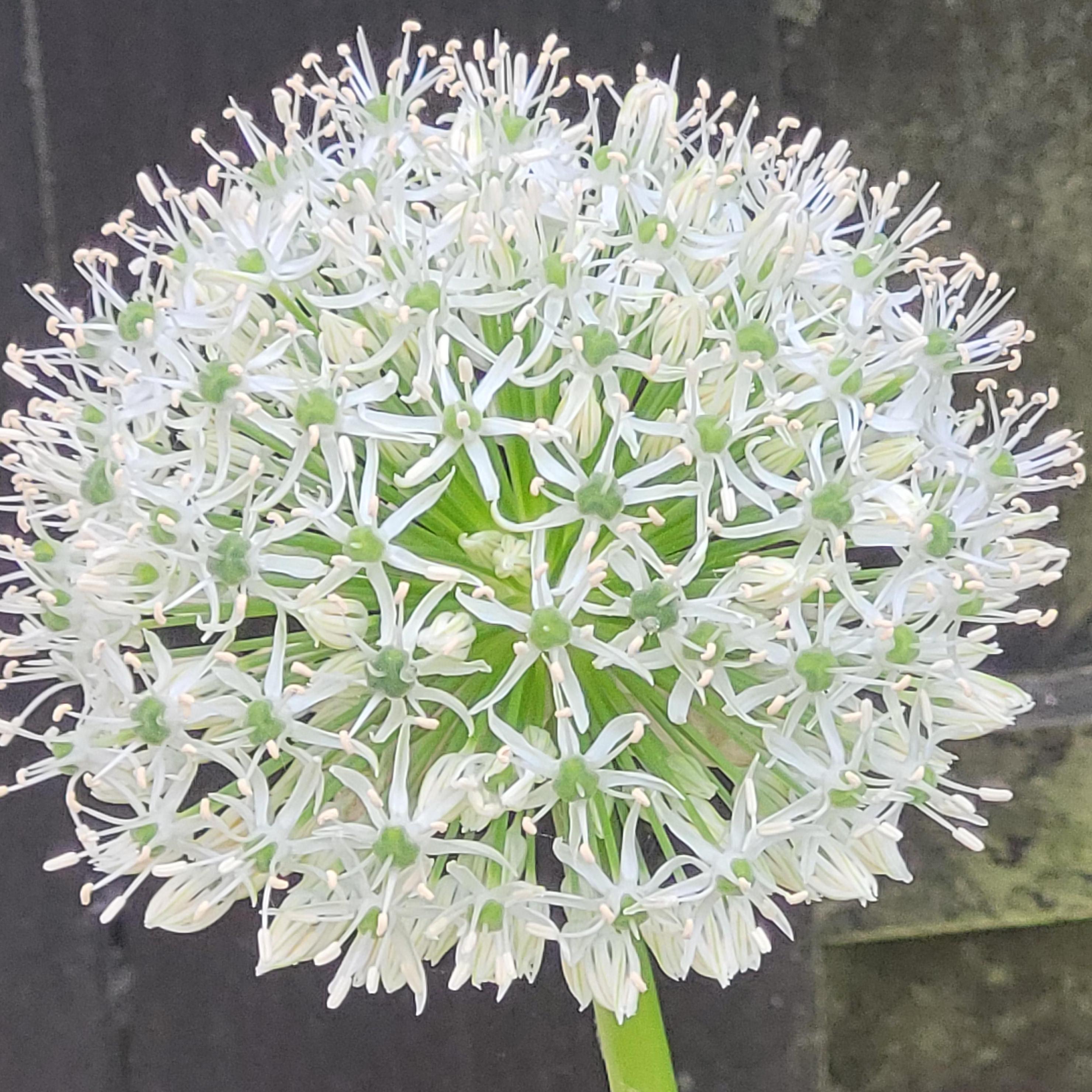 L'Allium stipitatum Album est une mutation blanche et spontanée de l'Allium stipitatum, originaire d'Asie centrale (Turkestan, Afghanistan). Cette plante bulbeuse herbacée appartient à la famille des alliacées (liliacées), comme l'ail cultivé, l'oignon et le poireau. Elle possède un organe de réserve charnu qui se multiplie par formation de bulbille, et partage avec les autres membres de sa famille une odeur d'oignon ou d'ail facilement perceptible lorsque l'on écrase son feuillage. Les inflorescences, perchées à plus de 1.20 m de hauteur, correspondent à de grandes ombelles rondes pouvant mesurer jusqu'à 13 cm de diamètre, elles sont constituées de nombreuses fleurs étoilées d'un blanc pur. Cette floraison est à cheval entre mai et juin. Le feuillage est constitué de 4 à 6 feuilles basales, larges, d'une teinte vert-de-gris, plus ou moins velues. Le feuillage jaunit puis disparaît en même temps qu'apparaît la floraison, c'est une bonne adaptation aux conditions estivales chaudes et sèches.