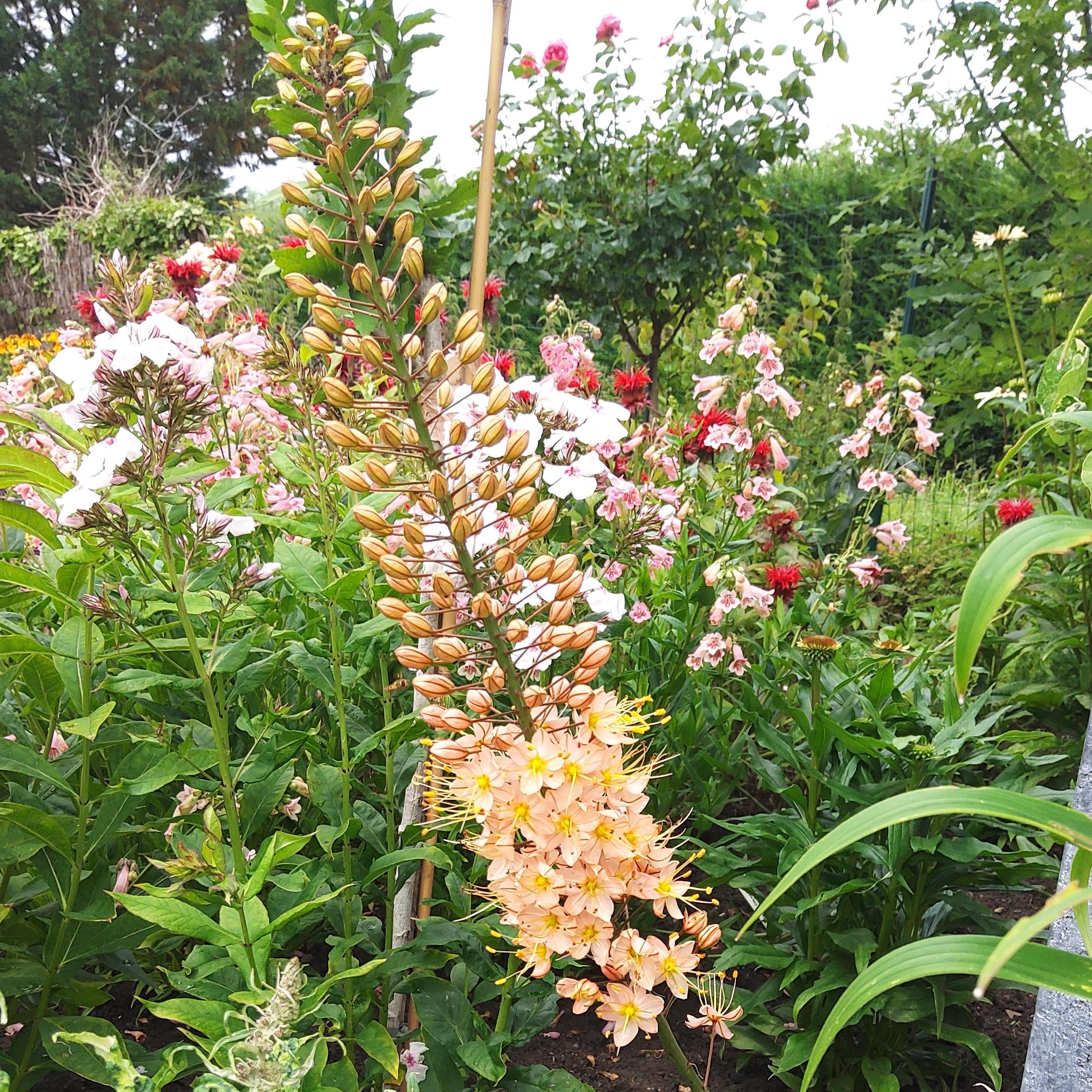 L'Eremurus Cléopatra, nommé également Lis des steppes ou Quenouille de Cléopâtre, est une plante vivace à racine charnue formant une touffe en été. C'est une des plantes les plus spectaculaires du jardin avec son coloris rare. En juin, des épis de 20 à 50 cm de long sont composées de centaines de petites fleurs d'un jaune orangé en forme d'étoile, de 1 à 2 cm de diamètre. Les fleurs éclosent de bas en haut, ce qui permet à la plante d'avoir une floraison sur plusieurs semaines.