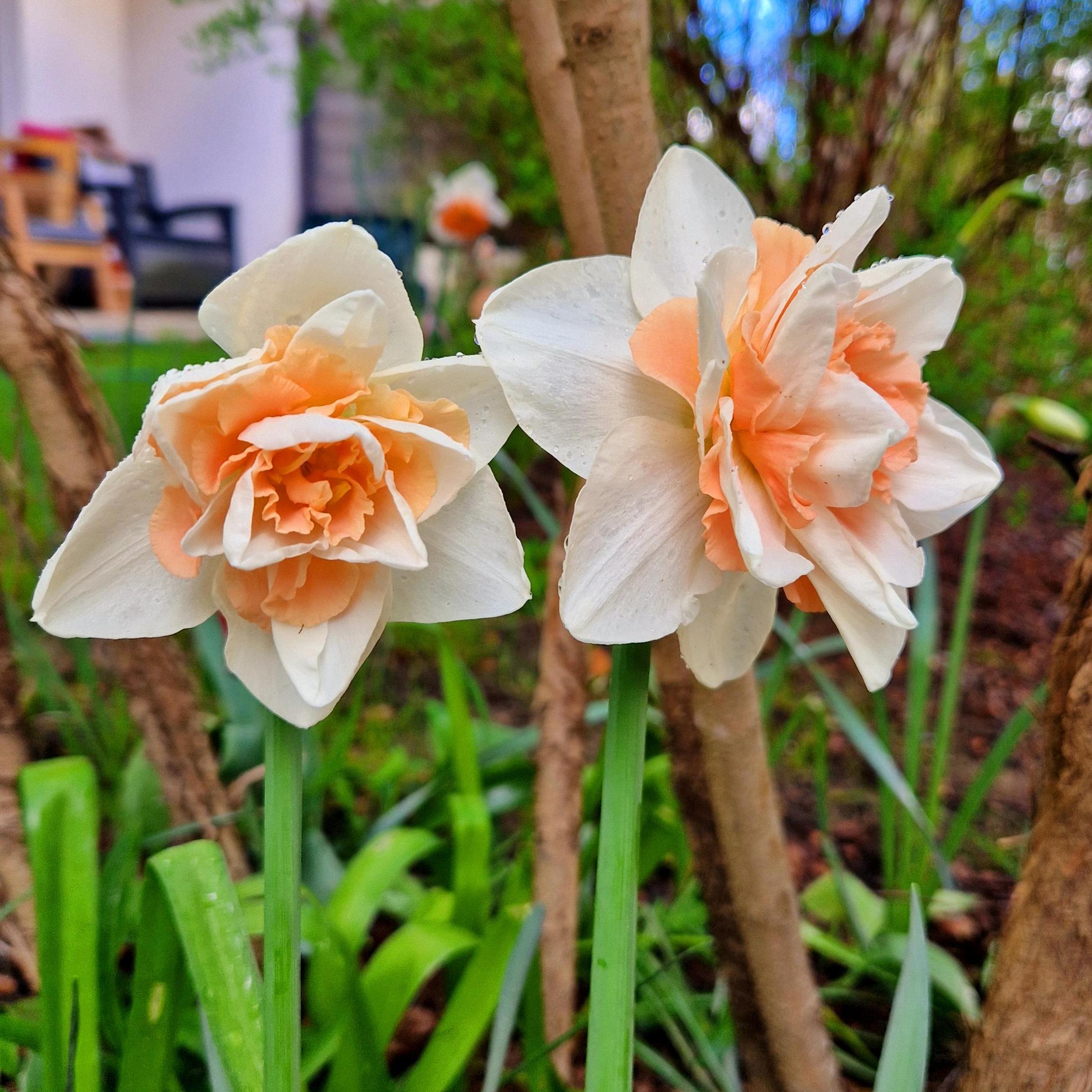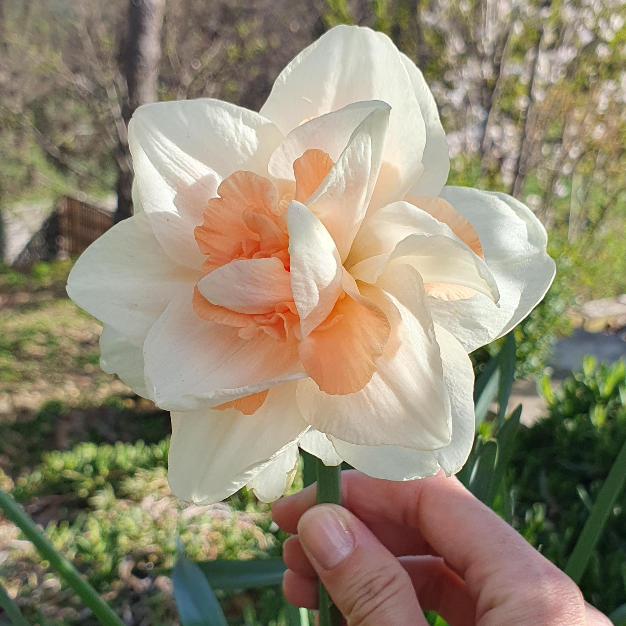 Très beaux narcisses doubles blanc mélé de rose au coeur et légèrement parfumés.