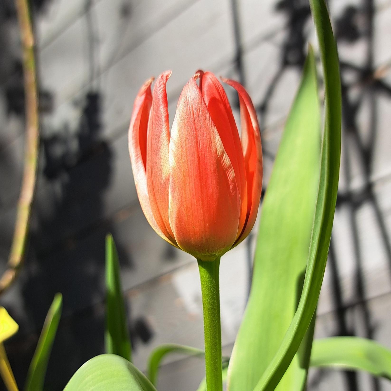La Tulipe Greigii 'Friendly Fire' est une variété basse, à floraison précoce, dont les fleurs de belle taille affichent un coloris éclatant, en rouge finement flammé de blanc crème. Dès le mois de mars, elles éclosent dans un nid de grandes feuilles délicatement marbrées de pourpre foncé. Dotée d'une excellente tenue en massifs, cette plante bulbeuse réveille le jardin à la sortie de l'hiver. Robuste et fidèle, résistante à la sécheresse estivale, peu exigeante, elle revient chaque année. Pensez aussi à composer de jolies potées avec ses bulbes, pour en profiter sur le rebord d'une fenêtre !