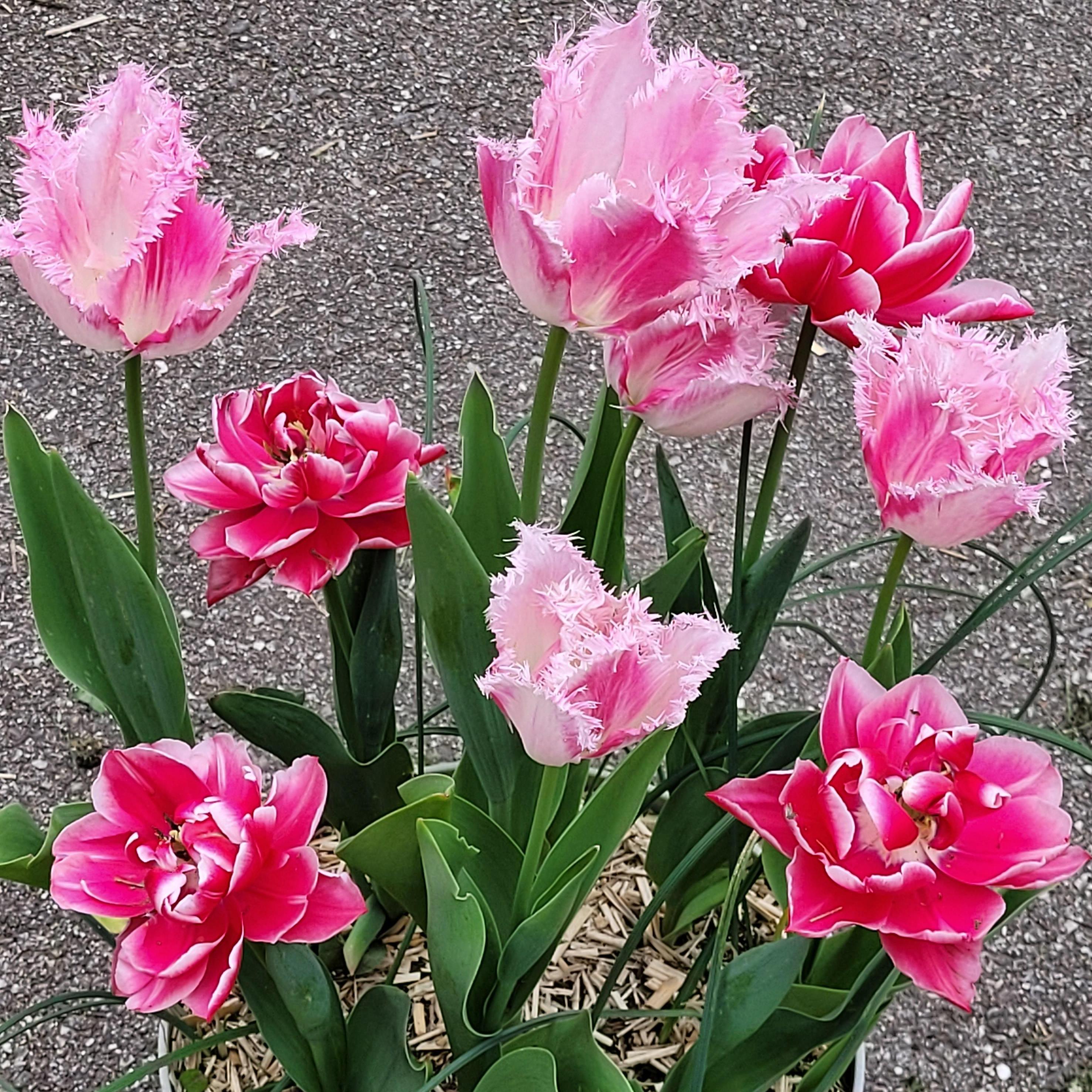 La Tulipe Dentelée Double Queensland est une variété tout à la fois luxueuse et pétrie de délicatesse. Absolument ravissantes, les fleurs très doubles de cette tulipe résolument rose sont intensément bordées d'une dentelle de petits cristaux blancs, à tel point que la fleur semble avoir été surprise par le givre en plein mois de mai. A l'extérieur de la corolle, chaque pétale affiche un ton rose cerise presque rouge qui s'estompe dans un dégradé allant du crème-rosé au rose bonbon en passant par le rose chair. Elle fleurit assez tard, au mois de mai, sur des tiges courtes et solides. Coupées, ses fleurs formeront des bouquets merveilleux.