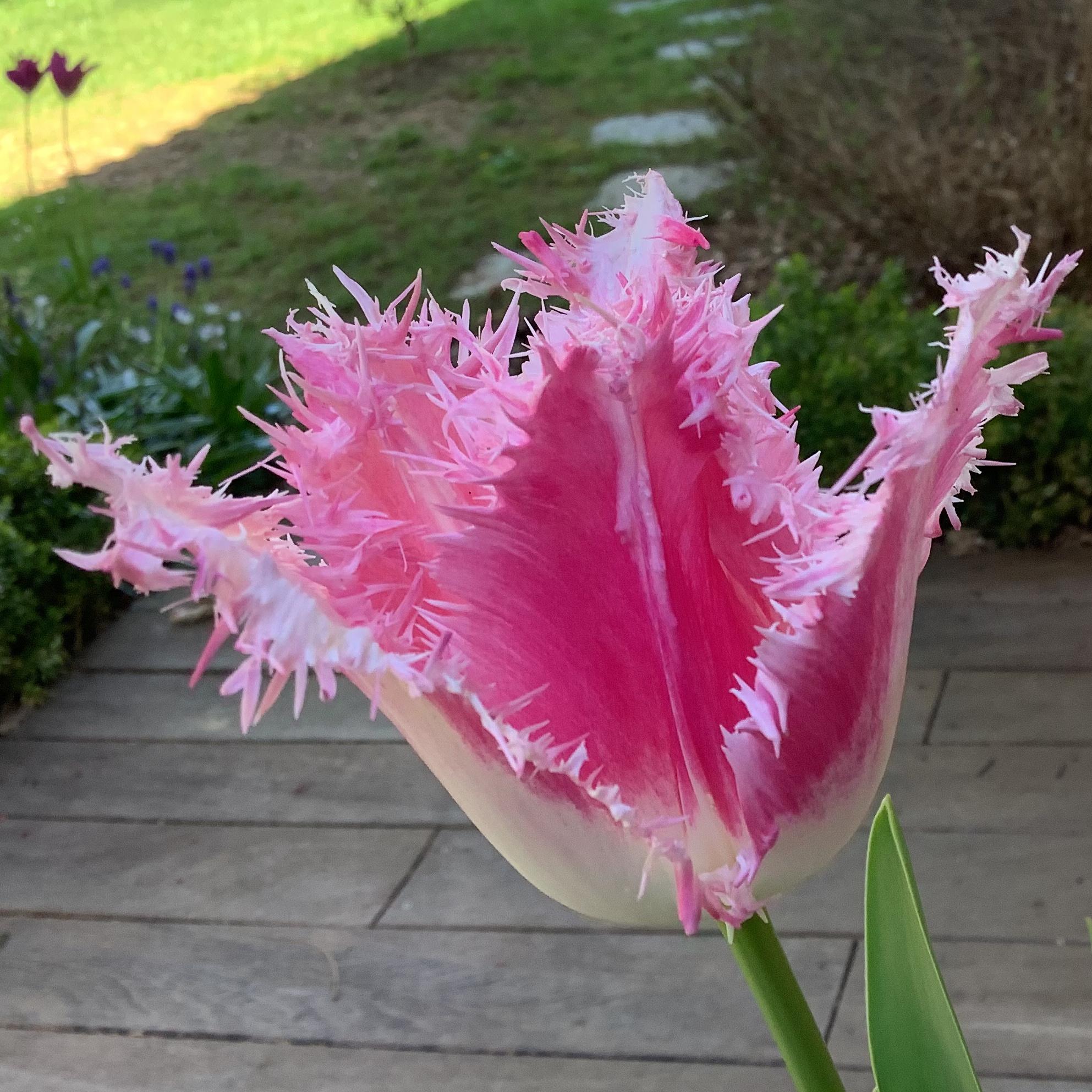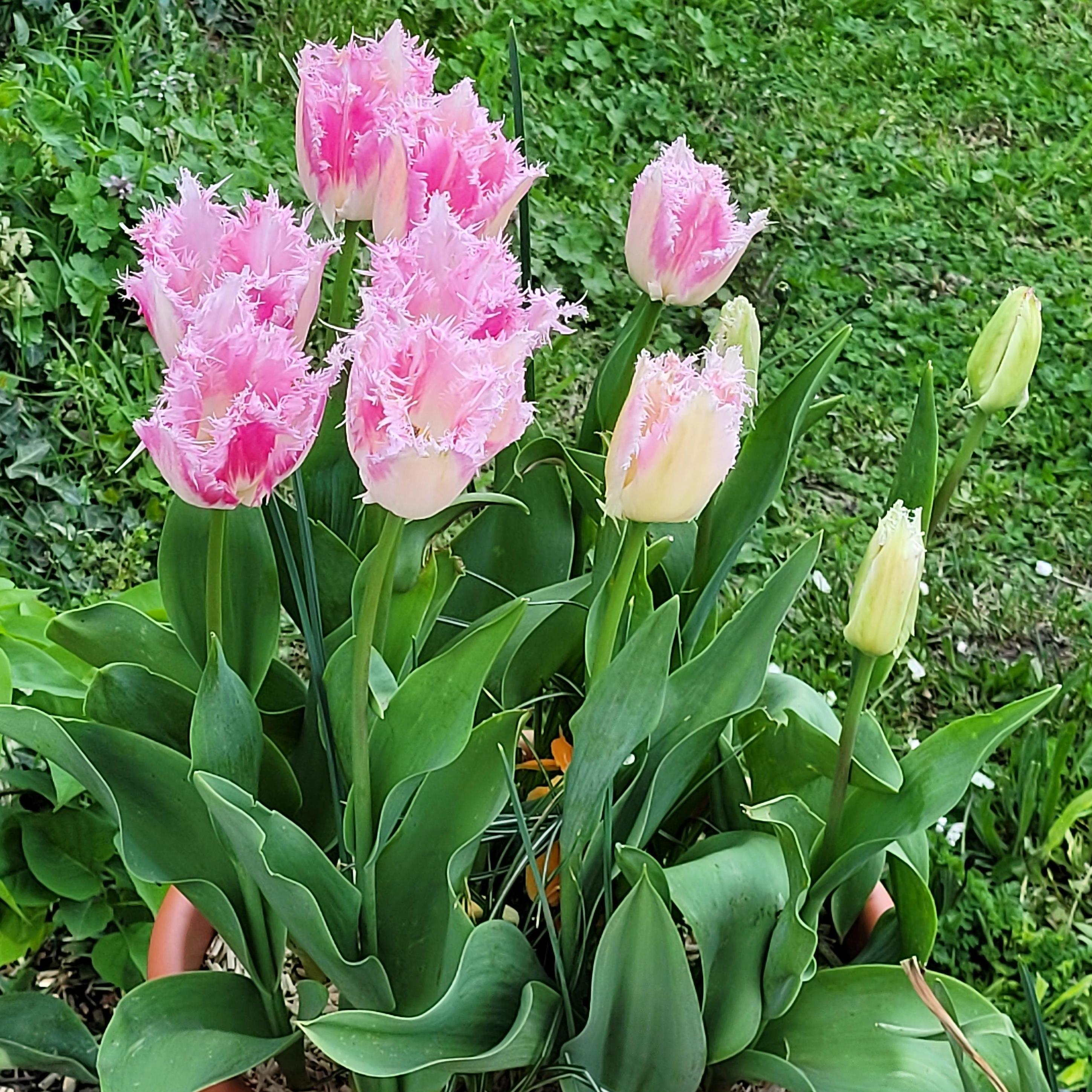 La Tulipe Dentelée Huis Ten Bosch offre une floraison rose pastel mêlé de blanc en Avril-Mai. Le bord des pétales est frangé en rose et blanc également. Parfaite dans les massifs printaniers ou en bouquets, leur élégance et leur tenue en vase intéressent de plus en plus les amateurs.