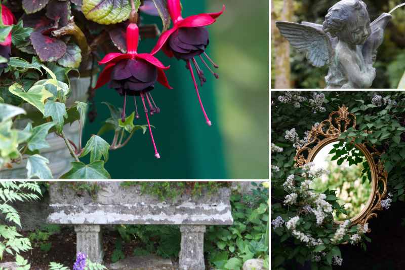 Pour peaufiner cette ambiance baroque, pourquoi ne pas insérer un ou deux accessoires raffinés : un cadre ajouré avec une belle patine dorée ou un miroir pour réfléchir la lumière, une lanterne vintage romantique en métal ou une statue représentant un poète, un ange ou une muse ? Un banc en pierre invitera aussi à la lecture et au repos.