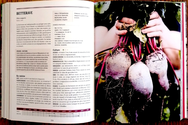 - Les - : J’aurais bien aimé un ou des tableau(x) synthétique(s) permettant par exemple de visualiser rapidement les légumes à cultiver en fonction des périodes de semis ou de récolte, ou encore en fonction des types de sol ou de climat. Là il faut chercher plante par plante, ce qui est un peu moins pratique. Quoiqu'il en soit, il a toute sa place dans la bibliothèque d'un amateur passionné de jardin potager : à s'offrir sans hésiter !
