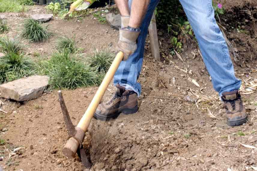 - La pointe permet : d’épierrer un terrain, de dessoucher, d’extirper les grosses racines ou “d’attaquer” la première partie d’un grand trou (par exemple, dans le cas du creusement d’une mare) dans les terres compactes.