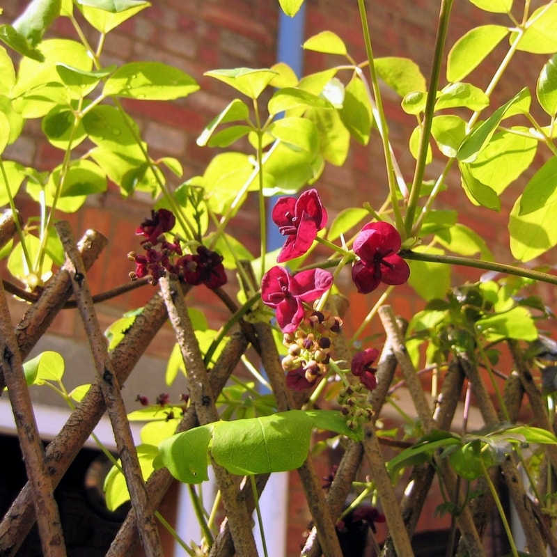Moins capricieuse qu’une clématite, aussi volubile qu’une glycine, l’Akebia quinata couramment appelée Akébie ou « Liane chocolat » est une grimpante méconnue d’origine asiatique. Elle est pleine de ressources pour s’enrouler à tout ce qui est à sa portée : elle escalade et, en peu de temps, transforme le mur le plus triste en tableau luxuriant.