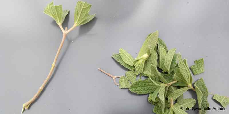 - "Habillez" la bouture : retirez les feuilles situées sur la moitié inférieure de la tige, pour ne laisser que deux feuilles au sommet, que l'on coupe à moitié quand elles sont larges. Cela permet de réduire l'évaporation, donc d'éviter que la bouture ne s'épuise ;