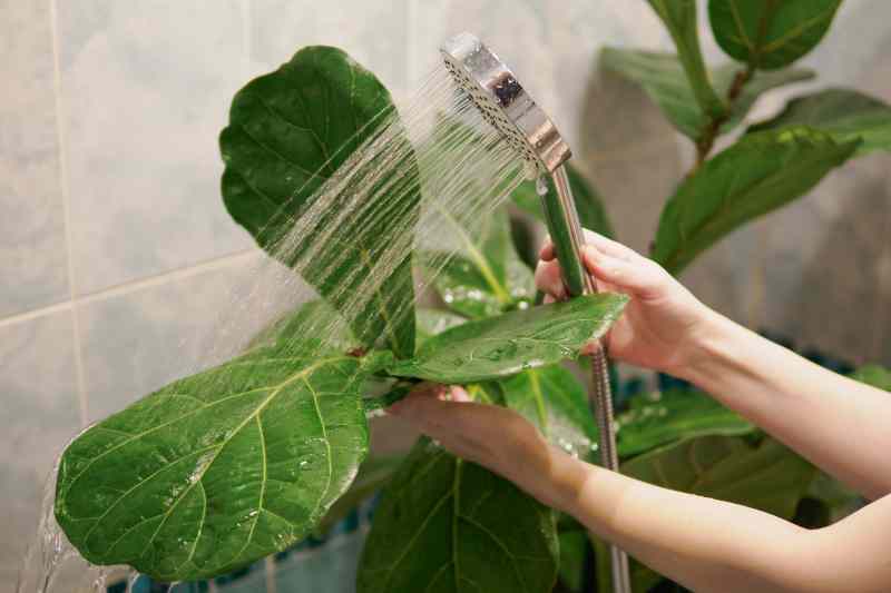 Doucher le feuillage s'envisage pour les grandes plantes à large feuilles, épaisses ou rigides, qui craignent le moins le jet de la douche… ou la petite pluie dehors ! Les plantes vertes à feuilles lisses (Ficus, Monstera) se nettoient aussi bien avec un linge humide (voir point 3), mais méritent une à deux fois par an ce traitement de faveur.