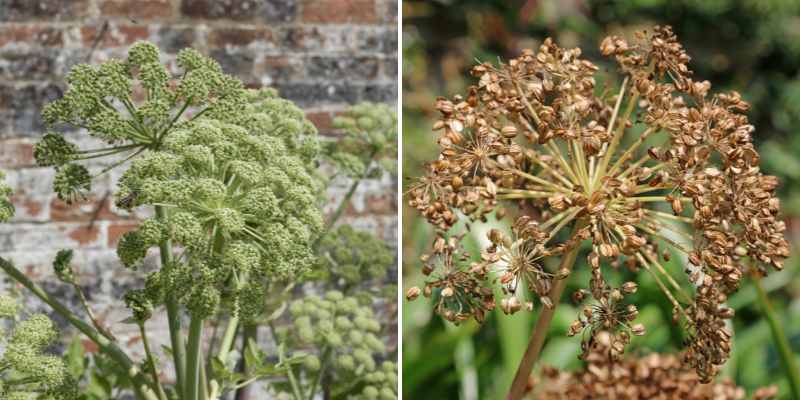 - L'angélique fait partie des plantes ombellifères (apiacées) qui se ressèment toutes seules : gardez quelques fleurs si vous souhaitez faire vos semis ou en offrir ; les petites plantules spontanées apparaissent souvent dès l'automne, à repiquer au printemps.