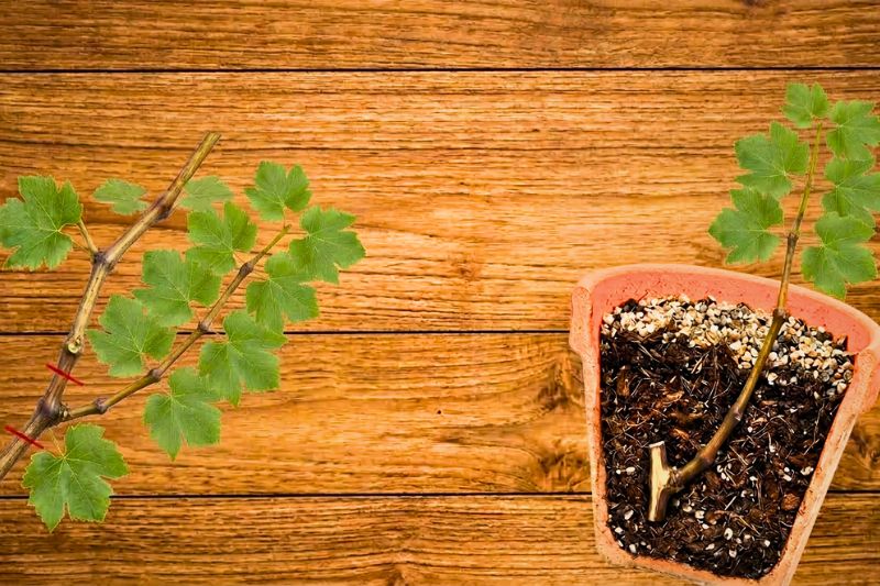 - La vigne (Vitis vinifera) : c'est la plante emblématique pour cette technique, car le vieux bois assure les réserves nécessaires à la reprise.