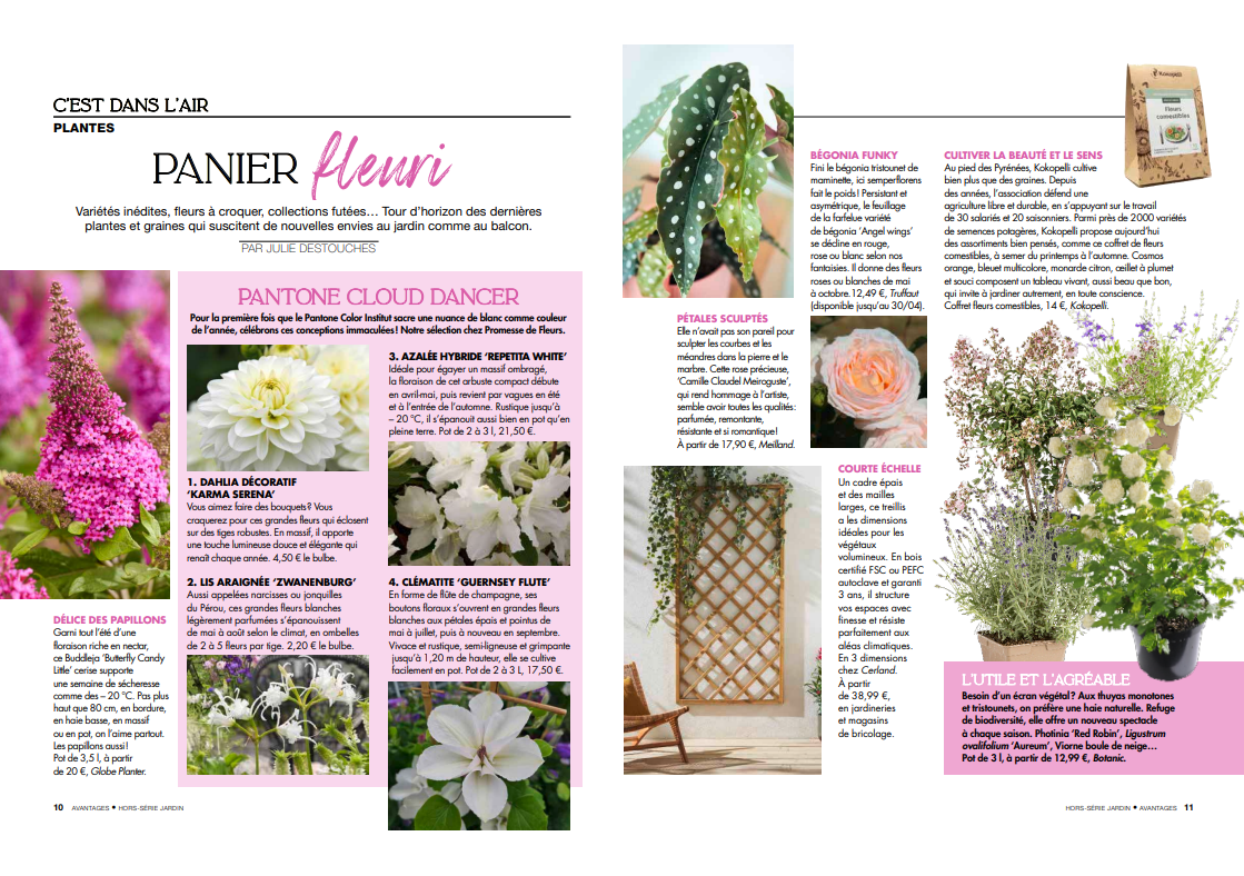 Promesse de fleurs dans le hors-série Jardin du magazine Avantages, actuellement en kiosques, avec une page consacrée à sa sélection de plantes autour de la couleur Pantone 2026.