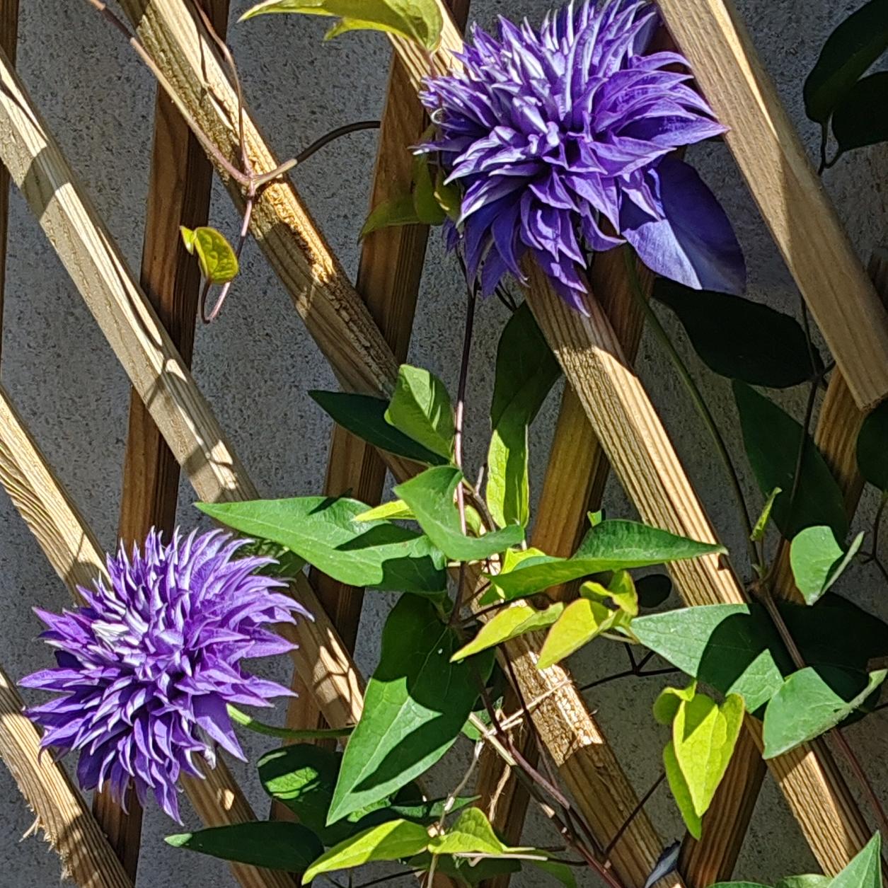 Plantez vos clématites en compagnie de vos rosiers grimpants ou liane pour prolonger la floraison de vos murs et pergolas jusqu'à la fin de l'été. C'est un genre riche en diversité, il en existe de toutes les couleurs, de toutes les formes et de toutes les tailles. Profitez de leur facilité de culture pour offrir à votre jardin, mais aussi à votre balcon un petit air romantique et bohème. 'Multi Blue', tout comme les pois de senteur, les ipomées volubilis et les capucines, adore se faufiler dans les arbustes, et se comporte très bien dans un grand pot, le pied à l'ombre et la tête au soleil. Le bleu-violacé des fleurs de 'Multi Blue' s'associe bien aux fleurs rose tendre de la clématite 'Josephine' et au bleu-rose de 'Vyvyan Pennel', au jardin comme dans les bouquets.