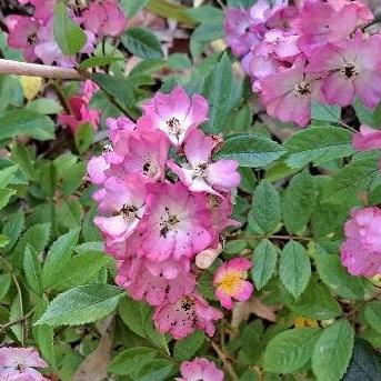 Si on reproche souvent aux rosiers modernes une certaine raideur et une faible résistance aux maladies, les créations de Louis Lens s'inscrivent dans une tout autre démarche qui promeut la simplicité, la générosité et la robustesse. Cette variété Puccini 'LENmos', créée par L. Lens en 1984, est un hybride du rosier musqué (Rosa (x) moschata), un arbuste probablement originaire d'Asie Mineure ou du Moyen-Orient. Un peu comme les polyanthas et les floribunda, les rosiers de cette famille produisent des fleurs rassemblées en bouquets, mais leurs coloris sont plus raffinés et ils arborent un port plus souple et plus gracieux. 'Puccini' frais forme un petit arbuste bas au port buissonnant, un peu évasé, dont la ramure est souple. Sa taille atteindra environ 80 cm de haut pour au moins autant en largeur. Son feuillage, très fourni, est découpé en folioles d'un vert assez clair, légèrement lustrées. C'est un feuillage caduc qui tombe en automne. De juin jusqu'à octobre éclosent par vagues successives de gros bouquets de fleurs arrondis. Chaque petit bouton éclot en une petite fleur simple de 2 cm de diamètre, rose clair, plus ou moins blanche au centre. Le cœur de la fleur est largement offert aux abeilles et autres insectes butineurs. Le parfum est absent. Si l'on prend soin de ne pas tailler les fleurs à partir du mois d'août, de nombreux petits fruits se forment. Ils deviennent rouges à l'automne. La rusticité de ce rosier est évaluée à -15 °C.