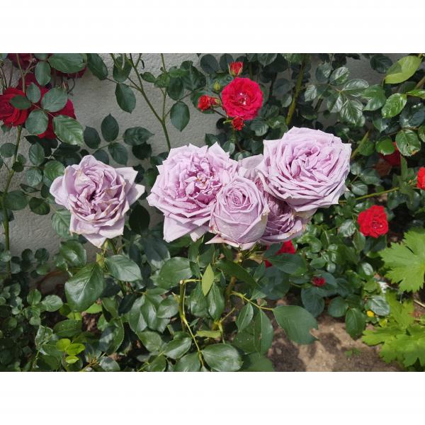 Ce rosier Mamy Blue est de la même veine que Charles de Gaulle, Sissi, Waltz Time ou encore Claude Brasseur, avec lesquels il peut composer un très joli massif aux mille nuances de rose-mauve-bleu rehaussées par quelques sauges arbustives ou penstémons de couleur rose à rouge fuchsia. Il trouvera sa place dans le jardin de tout amateur de fleurs, qu'il soit un jardinier débutant ou expérimenté. Avec son charme rétro et son beau parfum, il mérite un écrin gracieux et une place non loin de la maison. Certaines plantes vivaces à floraisons légères (Asters d'automne, digitales, penstémons), mais aussi les graminées, les lavandes et les nepétas, sont idéales pour rehausser sa beauté et l'accompagner tard en saison. Mariez-le par exemple à un rosier rouge ou grenat (Charles de Mills, Papa Meilland, Roseraie de l'Haÿ, Hansa), leurs coloris et leurs fragrances composeront une très belle symphonie. Avec un peu d'audace, on peut également essayer le mariage du mauve et de l'orange doux ou du jaune, avec un rosier Danaë ou Lady of Shalott par exemple. Des vivaces simples et faciles à cultiver comme le Geranium Rozanne, le Geranium Pink Cloud, le Nepeta Walker's Low et les campanules l'accompagneront durant une bonne partie de la belle saison. Il fera bonne figure en isolé, par exemple par groupe de 3 sujets, ainsi que dans un grand pot sur votre terrasse ou votre balcon. Ses fleurs font des très beaux bouquets romantiques, en compagnie des pivoines roses et du lilas blanc.