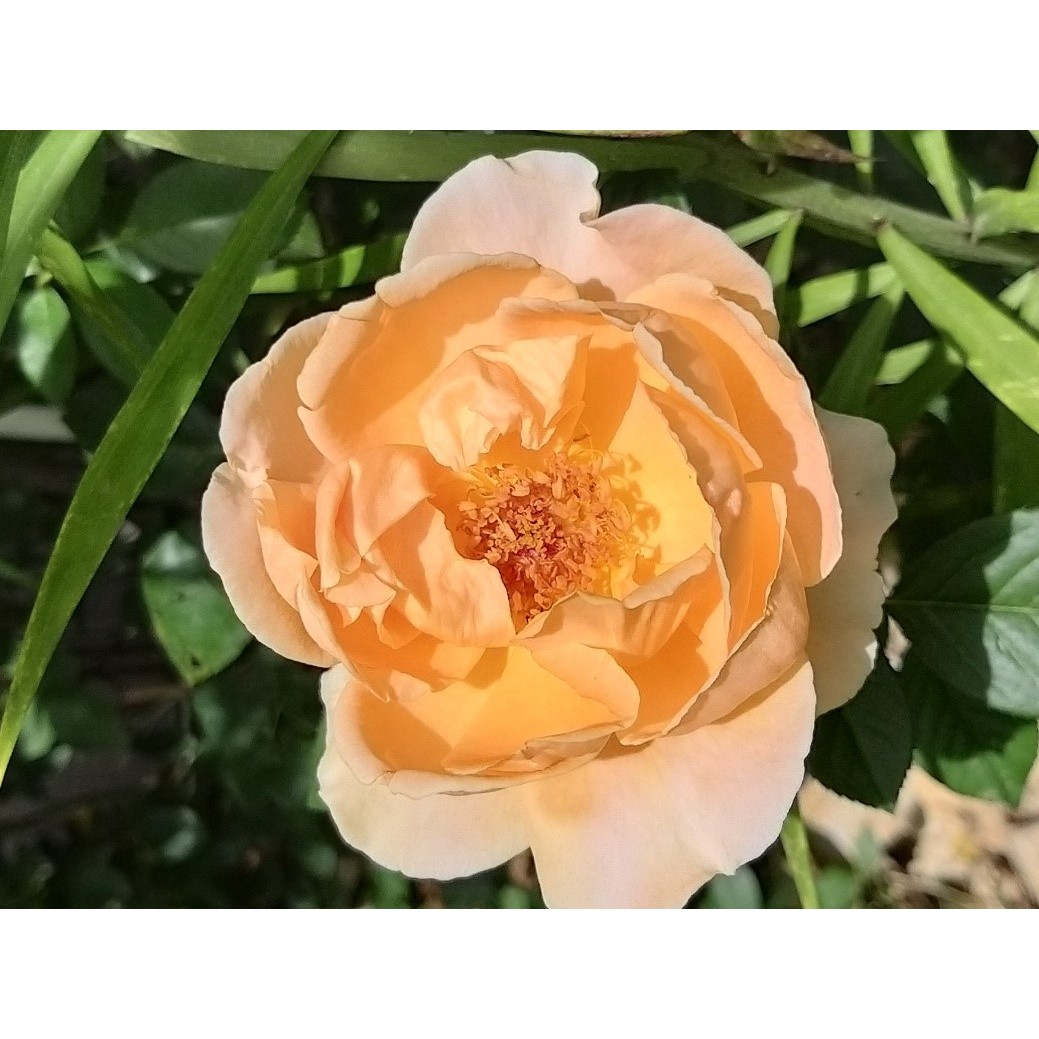 Si on reproche souvent aux rosiers modernes une certaine raideur et une faible résistance aux maladies, la variété Abbaye de Cluny® 'Meibrinpay' possède la vigueur et la délicatesse des roses anciennes. Ce rosier rattaché aux rosiers modernes à grandes fleurs, hybrides de thé, forme un petit arbuste au port buissonnant plutôt érigé, dont la ramure est souple. Sa taille atteindra environ 1 m de haut et 70 cm de large. De juin jusqu'aux gelées, par vagues successives parfois un peu distantes dans le temps, éclosent de très belles roses comptant 25 à 30 pétales, larges de 10 à 11 cm, solitaires, portées par de longues tiges. Elles forment un dégradé allant de l'orange saumoné à l'abricot puis au blanc-crème, du centre de la fleur vers la bordure. Le coeur de la fleur, ombré de rouge, est garni de nombreuses étamines dorées. Le parfum est très discret. Son feuillage, abondant, découpé en grands folioles d'un vert vif et satiné, est dans l'ensemble très sain, même s'il est parfois sujet à la maladie des tâches noires en climat humide.