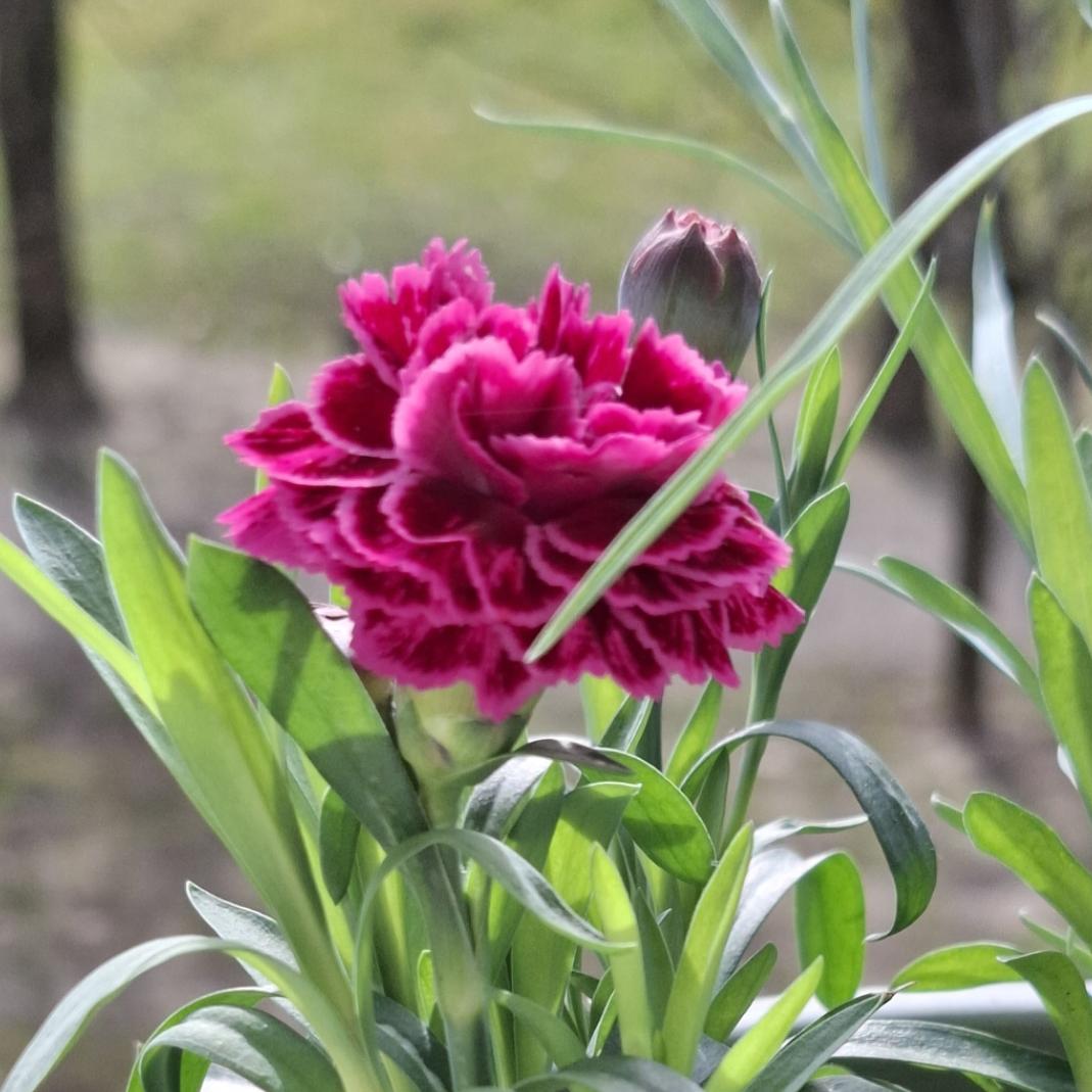 L'œillet Sunflor® ‘Sinclair’ appartient à la famille des Caryophyllacées, qui comprend des plantes telles que la saponaire, la sagine et le Gypsophile. C'est l’une des nombreuses variétés issues du croisement entre le Dianthus plumarius et le Dianthus caryophyllus. Le Dianthus plumarius est une plante vivace européenne, l'ancêtre principal des différentes variétés d'œillets mignardises, anciennes ou modernes. Le Dianthus caryophyllus, d'origine méditerranéenne, a transmis à sa descendance son parfum merveilleux de girofle et sa tolérance aux sols calcaires et secs. L'œillet Sunflor® 'Sinclair' pousse rapidement, atteignant une hauteur et une envergure maximales de 15 à 20 cm. Il forme une touffe dense, produit des fleurs larges de 3 à 4 cm de diamètre, rondes et doubles, portées par des tiges courtes et souvent ramifiées, d'avril à octobre. Ses feuilles linéaires, persistantes et coriaces, d'un magnifique gris-bleuté, sont pointues et lisses.
