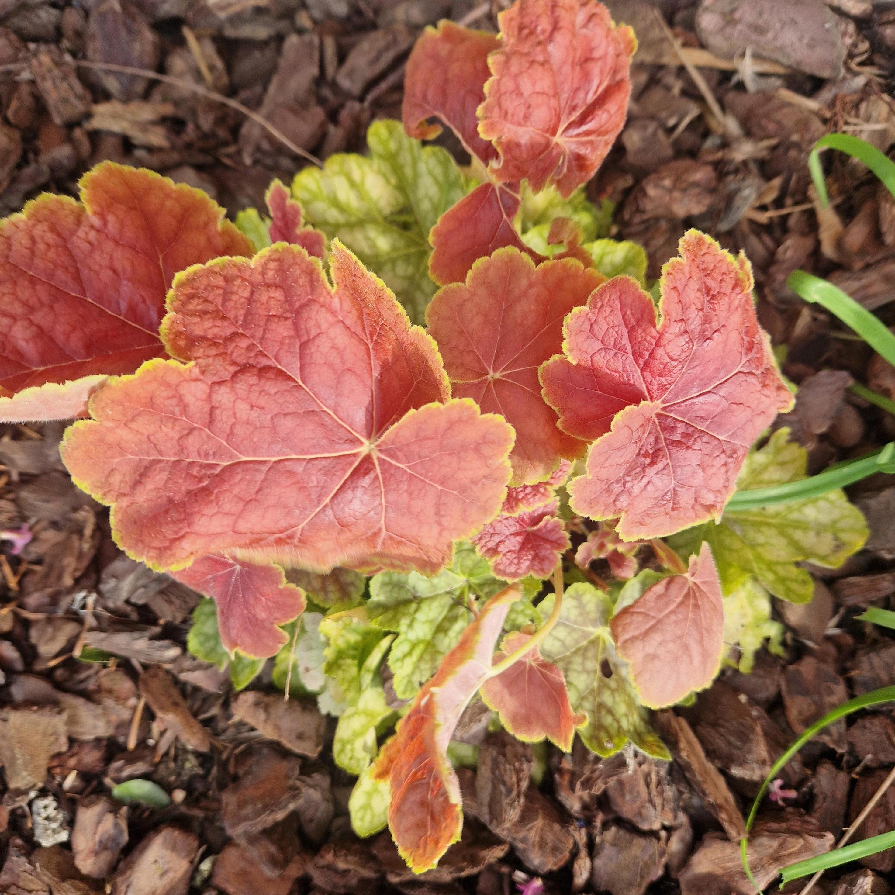 L'Heuchera ‘Tiramisu' , comme son nom le laisse présager, est une plante vivace absolument délicieuse. Cet hybride de l'Heuchera villosa est célèbre pour son feuillage semi-persistant dont le coloris change au fil du temps, dans une palette de tons vert-jaune doré, orangé, brique, pourpre à brun chocolat clair, sous une floraison estivale délicate, en minces épis garnis de clochettes blanches. Peu exigeante et robuste, cette vivace est à placer en bordure d'allée ou de massifs, ou même dans des potées fleuries sur la terrasse ou le balcon.